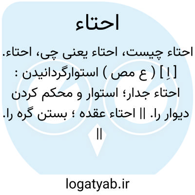 احتاء. [ اِ ] ( ع مص ) استوارگردانیدن: احتاء جدار؛ استوار و محکم کردن دیوار را. || احتاء عقده؛ بستن گره را. || احتاء کساء؛ ریشه تافتن گلیم را. تافتن ریشه. || احتاء ثوب؛ دوختن جامه را. ( منتهی الارب ).