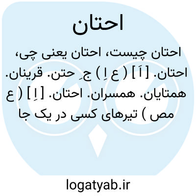 احتان. [ اَ ] ( ع اِ ) ج ِ حتن. قرینان. همتایان. همسران.