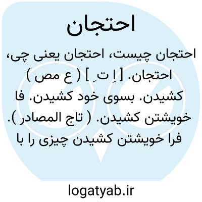 احتجان. [ اِ ت ِ ] ( ع مص ) کشیدن. بسوی خود کشیدن. فا خویشتن کشیدن. ( تاج المصادر ). فرا خویشتن کشیدن چیزی را با چوگان و هر چوب سرکج. || اِحتجان ِ مال؛ فراهم آوردن و گردکردن مال را. برای خود گرفتن و پنهان کردن آن را.