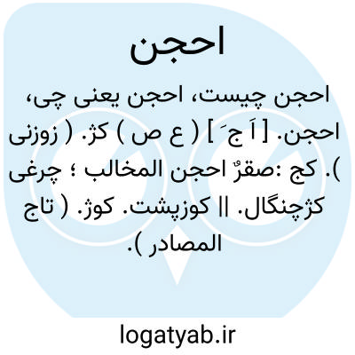 احجن. [ اَ ج َ ] ( ع ص ) کژ. ( زوزنی ). کج:صقرٌ احجن المخالب؛ چرغی کژچنگال. || کوزپشت. کوژ. ( تاج المصادر ). قوزپشت. کوز. || کج بینی. خفته بینی. || چیز کج شده. || مرغول و فروهشته موی: شعر احجن. ( منتهی الارب ).