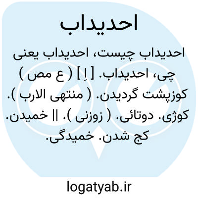 احدیداب. [ اِ ] ( ع مص ) کوزپشت گردیدن. ( منتهی الارب ). کوژی. دوتائی. ( زوزنی ). || خمیدن. کج شدن. خمیدگی. کجی. || احدیداب رَمل؛ خم گرفتن ریگ توده. ( منتهی الارب ). اِحدِباب.