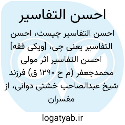 [ویکی فقه] احسن التفاسیر اثر مولی محمدجعفر (م ح ۱۲۹۰ ق) فرزند شیخ عبدالصاحب خشتی دوانی، از مفسران و فقهای شیعه می باشد.