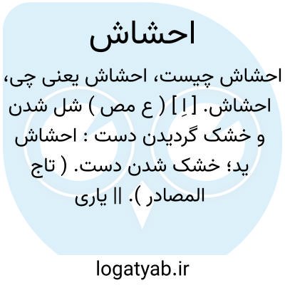 احشاش. [ اِ ] ( ع مص ) شل شدن و خشک گردیدن دست: احشاش ید؛ خشک شدن دست. ( تاج المصادر ). || یاری دادن کسی را در بریدن و گردآوردن حشیش. || احشاش کلأ؛ بالیدن کلأ آن قدر که آن را بریدن نتوانند. || احشاش مَراءة؛ خشک شدن بچه در شکم او. ( تاج المصادر ) ( منتهی الارب ). || اَحَش الشحم الناقة؛ باریک ساق گردانید پیه ناقه را. || احششته عَن حاجته؛ بازداشتم او را از حاجت وی به اعجال. ( منتهی الارب ).