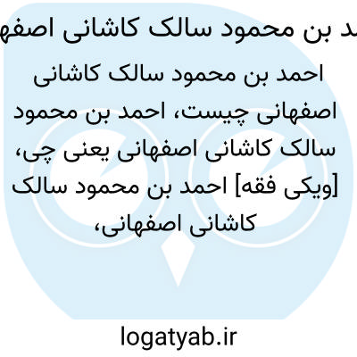 [ویکی فقه] احمد بن محمود سالک کاشانی اصفهانی، از نمایندگان مردم اصفهان در ادوار اول و سوم و چهارم مجلس شورای اسلامی بوده است.