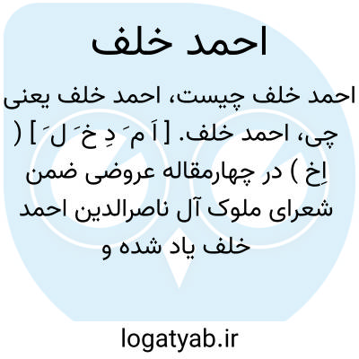 احمد خلف. [ اَ م َ دِ خ َ ل َ ] ( اِخ ) در چهارمقاله عروضی ضمن شعرای ملوک آل ناصرالدین احمد خلف یاد شده و آقای قزوینی در حواشی کتاب نوشته اند: احتمال ضعیف میرود پسر خلف بن احمد معروف امیر سیستان مراد باشد و اینکه کنیه خلف بن احمد ابواحمد بوده است نیز مؤید این احتمال است. هر چند در کتب تاریخ پسری احمد نام برای او ننوشته اند. رجوع به چهارمقاله چ لیدن ص 28 و 150 شود.