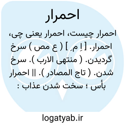 احمرار. [ اِ م ِ ] ( ع مص ) سرخ گردیدن. ( منتهی الارب ). سرخ شدن. ( تاج المصادر ). || احمرار بأس؛ سخت شدن عذاب: احمر البأس؛ سخت شد عذاب. ( منتهی الارب ). || ( اِمص ) سرخی.