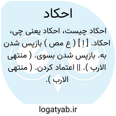 احکاد. [ اِ ] ( ع مص ) بازپس شدن به. بازپس شدن بسوی. ( منتهی الارب ). || اعتماد کردن. ( منتهی الارب ).