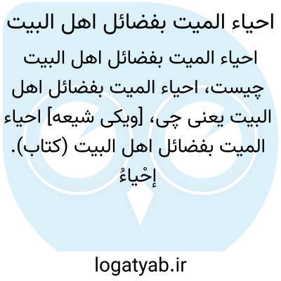[ویکی شیعه] احیاء المیت بفضائل اهل البیت (کتاب). إحْیاءُ الْمَیّت بِفَضائلِ أهْلِ الْبَیْت (ع)اثر سیوطی (متوفای ۹۱۱ ق) عالم اهل سنت، رساله ای کوتاه شامل ۶۰ حدیث درباره خاندان پیامبر (ص) است.
