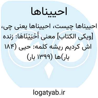 دانشنامه اسلامی [ویکی الکتاب] معنی أَحْیَیْنَاهَا: زنده اش کردیمریشه کلمه: حیی (۱۸۴ بار)ها (۱۳۹۹ بار)