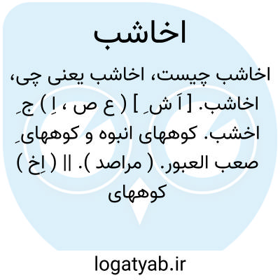 اخاشب. [ اَ ش ِ ] ( ع ص، اِ ) ج ِ اخشب. کوههای انبوه و کوههای ِ صعب العبور. ( مراصد ). || ( اِخ ) کوههای صمّان. ( منتهی الارب ). کوههائی است بصمّان که در قرب آنها کوه و پشته ای نیست. ( معجم البلدان ). || جبال مکه و جبال مِنی. || جبال سیاه نزدیک اَجَاء و بین آندو رمله ای است کوتاه. ( معجم البلدان ).