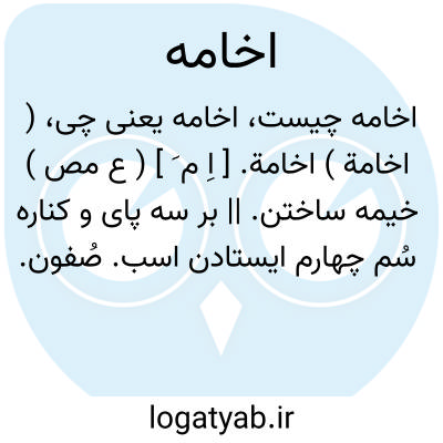 لغت نامه دهخدا ( اخامة ) اخامة. [ اِ م َ ] ( ع مص ) خیمه ساختن. || بر سه پای و کناره سُم چهارم ایستادن اسب. صُفون.