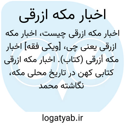 [ویکی فقه] اخبار مکه أزرقی (کتاب). اخبار مکه ازرقی کتابی کهن در تاریخ محلی مکه، نگاشته محمد بن عبدالله بن احمد بن محمد غسانی مشهور به ابوالولید ازرقی مکی می باشد.
