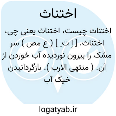 اختناث. [ اِ ت ِ ] ( ع مص ) سر مشک را بیرون نوردیده آب خوردن از آن. ( منتهی الارب ). بازگردانیدن خیک آب بآنطرف و از آن طرف خیک آب خوردن.