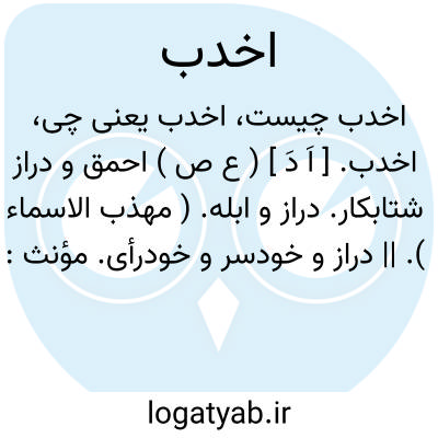 اخدب. [ اَ دَ ] ( ع ص ) احمق و دراز شتابکار. دراز و ابله. ( مهذب الاسماء ). || دراز و خودسر و خودرأی. مؤنث: خَدْباء.
