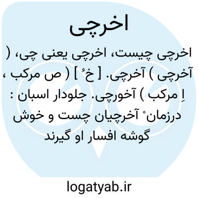 ( آخرچی ) آخرچی. [ خ ُ ] ( ص مرکب، اِ مرکب ) آخورچی. جلودار اسبان: