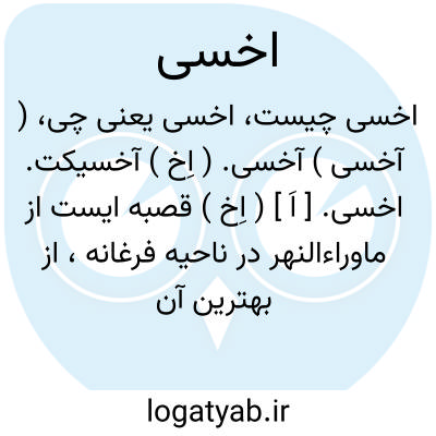 اخسی. [ اَ ] ( اِخ ) قصبه ایست از ماوراءالنهر در ناحیه فرغانه، از بهترین آن بلاد است. ( برهان قاطع ). قصبه ایست از ماوراءالنهر از مضافات فرغانه که مولد اثیرالدین بوده.( جهانگیری ). همان اخسیک است که اخسیکت باشد. ( آنندراج ). و آن پایتخت عمرشیخ میرزا و بابر پادشاه بود.