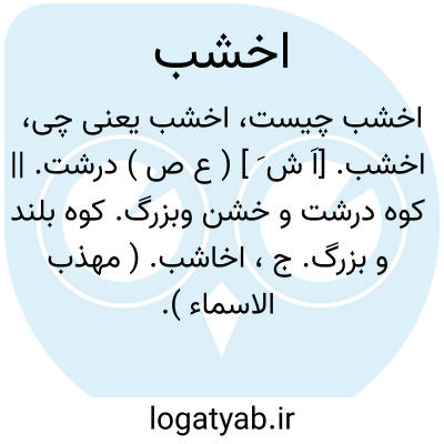 اخشب. [اَ ش َ ] ( ع ص ) درشت. || کوه درشت و خشن وبزرگ. کوه بلند و بزرگ. ج، اخاشب. ( مهذب الاسماء ).