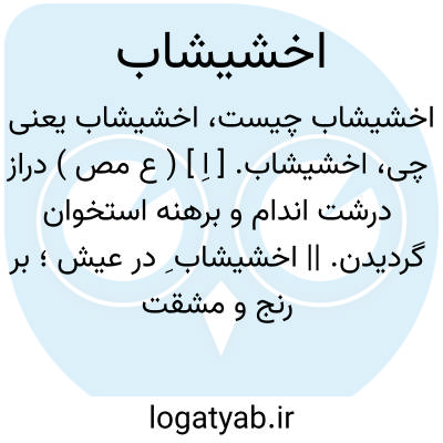 اخشیشاب. [ اِ ] ( ع مص ) دراز درشت اندام و برهنه استخوان گردیدن. || اخشیشاب ِ در عیش؛ بر رنج و مشقت زیست شکیبیدن.