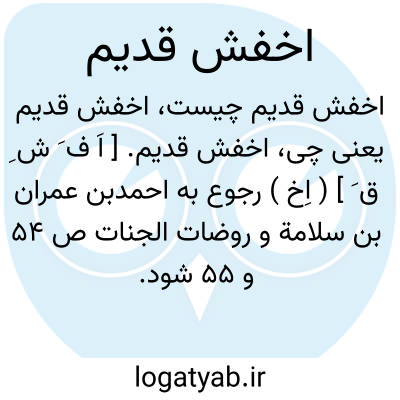 لغت نامه دهخدا اخفش قدیم. [ اَ ف َ ش ِ ق َ ] ( اِخ ) رجوع به احمدبن عمران بن سلامة و روضات الجنات ص 54 و 55 شود.