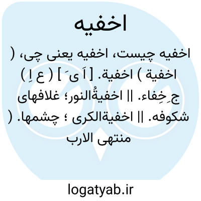 ( اخفیة ) اخفیة. [ اَ ی َ ] ( ع اِ ) ج ِخِفاء. || اخفیةُالنور؛ غلافهای شکوفه. || اخفیةالکری؛ چشمها. ( منتهی الارب ). در تاج العروس آمده: و اخفیةالکرا؛ الاعین. قال: