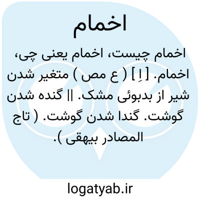 اخمام. [ اِ ] ( ع مص ) متغیر شدن شیر از بدبوئی مشک. || گنده شدن گوشت. گندا شدن گوشت. ( تاج المصادر بیهقی ).