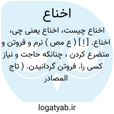 اخناع. [ اِ ] ( ع مص ) نرم و فروتن و متضرع کردن، چنانکه حاجت و نیاز کسی را. فروتن گردانیدن. ( تاج المصادر بیهقی ). نرم کردن و فروتن کردن. ( منتهی الارب ).