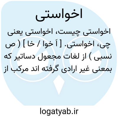 اخواستی. [ اَ خوا / خا ] ( ص نسبی ) از لغات مجعول دساتیر که بمعنی غیر ارادی گرفته اند مرکب از «اَ» علامت نفی + خواستی بمعنی ارادی ( ! ). رجوع به برهان قاطع و آنندراج شود.