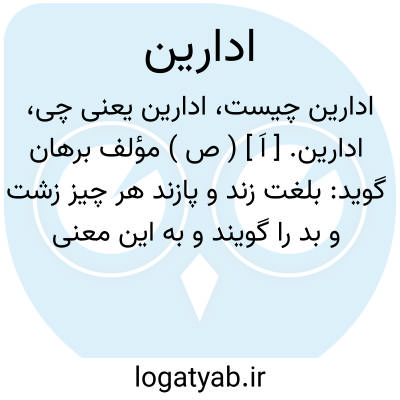 ادارین. [ اَ ] ( ص ) مؤلف برهان گوید: بلغت زند و پازند هر چیز زشت و بد را گویند و به این معنی بجای حرف ثانی رای قرشت هم بنظر آمده است.