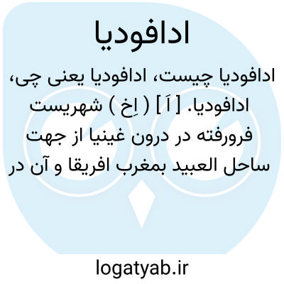 ادافودیا. [ اَ ] ( اِخ ) شهریست فرورفته در درون غینیا از جهت ساحل العبید بمغرب افریقا و آن در عرض 13 درجه و 6 دقیقه شمالی و طول یک درجه و 3 دقیقه شرقی است. سکنه آن 24 هزار تن و آنان اهل شجاعت و اقدام اند و مسلمانان باشند. ( ضمیمه معجم البلدان ).