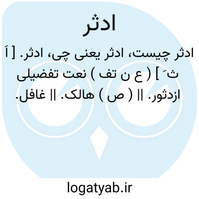 ادثر. [ اَ ث َ ] ( ع ن تف ) نعت تفضیلی ازدثور. || ( ص ) هالک. || غافل.