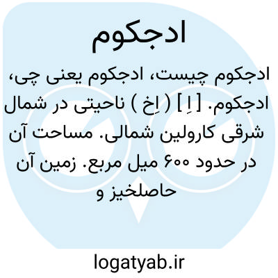 لغت نامه دهخدا ادجکوم. [ اِ ] ( اِخ ) ناحیتی در شمال شرقی کارولین شمالی. مساحت آن در حدود 600 میل مربع. زمین آن حاصلخیز و دارای بیشه های صنوبر است و از آنهاقطران بسیار استخراج شود. ( ضمیمه معجم البلدان ).