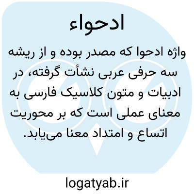 واژه ادحوا که مصدر بوده و از ریشه سه حرفی عربی نشأت گرفته، در ادبیات و متون کلاسیک فارسی به معنای عملی است که بر محوریت اتساع و امتداد معنا می‌یابد. این مفهوم بیانگر فرآیند تبدیل شدن یک شیء، یک فضا یا یک مفهوم از حالتی محدود و متراکم به وضعیتی بسط‌یافته و فراخ است. در بافت اصلی خود، ادحوا  دلالت بر گستردگی فیزیکی دارد؛ به گونه‌ای که یک سطح یا حجم، پهنا و عمق بیشتری به خود می‌گیرد و دیگر محدود به ابعاد اولیه نیست. این واژه حامل بار معنایی تحول از تنگی به فراخی است و عموماً در توصیف مناظر، فضاها یا حتی احوالات روحی به کار می‌رود که از قیود رها شده‌اند.