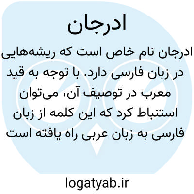 ادرجان نام خاص است که ریشههایی در زبان فارسی دارد. با توجه به قید معرب در توصیف آن، میتوان استنباط کرد که این کلمه از زبان فارسی به زبان عربی راه یافته و در آن زبان نیز مورد استفاده قرار گرفته یا ثبت شده است. دریگان واژهای در حوزه نجوم است که در منابع کهن فارسی به آن اشاره شده و به نظر میرسد که شکلی از یک اصطلاح نجومی باشد. در نظام نجومی مرتبط با دریگان، قسمت اول هر برج به صاحب همان برج اختصاص مییابد. قسمت دوم به صاحب برجی تعلق میگیرد که از نظر علم مثلثات نجومی (مثلثات یا همان مثلثه که برجها را به چهار گروه سه تایی تقسیم میکند) با برج اول مرتبط است، و قسمت سوم نیز به صاحب برج دیگری از همان مثلثه. به عنوان مثال، در برج حمل (که صاحب آن مریخ است)، قسمت اول به مریخ، قسمت دوم به شمس (صاحب برج اسد که از مثلثه ناری است) و قسمت سوم به مشتری (صاحب برج قوس که آن هم از مثلثه ناری است) نسبت داده میشود. این تقسیمبندیها، که در جدولهای نجومی برای تعیین خداوندان وجوه و دریگان ذکر شدهاند، در احکام نجوم و پیشبینیهای مرتبط با تأثیرات فلکی مورد استفاده قرار میگرفتهاند. این مفهوم به طور کلی به عنوان نوعی اعمال و اشکال نجومی توصیف شده است.