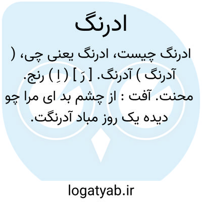 ( آدرنگ ) ( اسم ) ۱ - غم اندوه محنت. ۲ - آفت مصیبت.