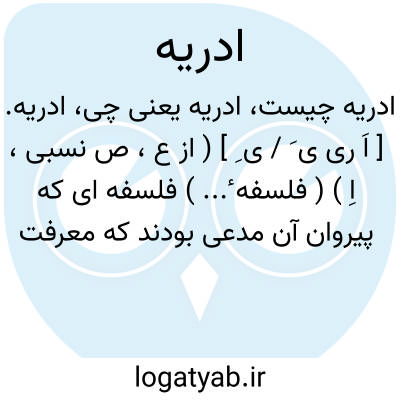 ادریه. [ اَ ری ی َ / ی ِ ] ( از ع، ص نسبی، اِ ) ( فلسفه ٔ... ) فلسفه ای که پیروان آن مدعی بودند که معرفت تام بذات و صفات الهی دارند.