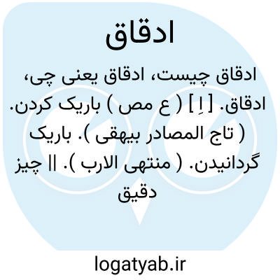 ادقاق. [ اِ ] ( ع مص ) باریک کردن. ( تاج المصادر بیهقی ). باریک گردانیدن. ( منتهی الارب ). || چیز دقیق دادن. اندک دادن. ( تاج المصادر بیهقی ). || نرم کردن آرد. باریک کردن آرد. ( آنندراج ). || گوسفند بخشیدن به. || یقال اتیته فماادقنی ولااجلنی؛ ای مااعطانی دقیقاً و لاجلیلا. ( منتهی الارب ). || نیکو گفتن. || نیکو گرفتن.