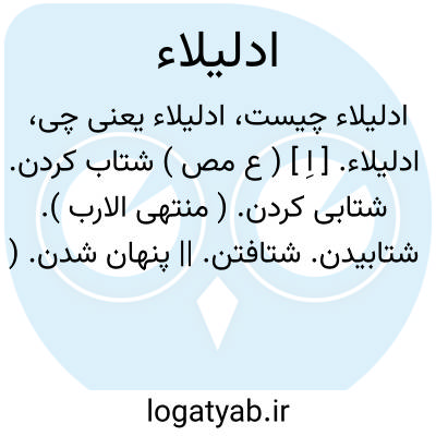لغت نامه دهخدا ادلیلاء. [ اِ ] ( ع مص ) شتاب کردن. شتابی کردن. ( منتهی الارب ). شتابیدن. شتافتن. || پنهان شدن. ( مصادر زوزنی ).