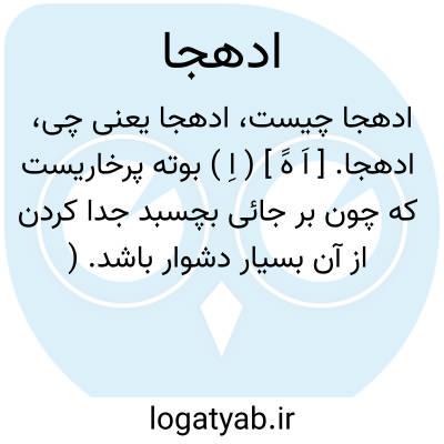 ادهجا. [ اَ هََ ] ( اِ ) بوته پرخاریست که چون بر جائی بچسبد جدا کردن از آن بسیار دشوار باشد. ( برهان قاطع ). اجهره. ( جهانگیری ).