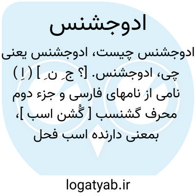 لغت نامه دهخدا ادوجشنس. [؟ ج ِ ن ِ ] ( اِ ) نامی از نامهای فارسی و جزء دوم محرف گشنسب [ گُشن اسب ]، بمعنی دارنده اسب فحل است.