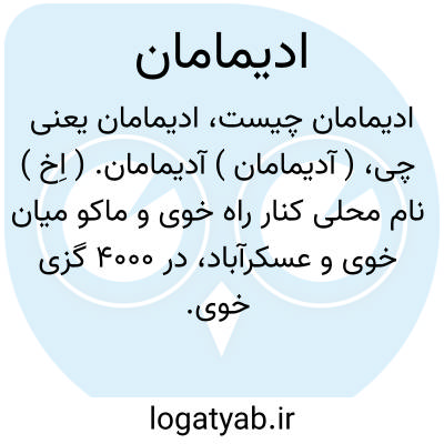 ( آدیمامان ) آدیمامان. ( اِخ ) نام محلی کنار راه خوی و ماکو میان خوی و عسکرآباد، در 4000 گزی خوی.