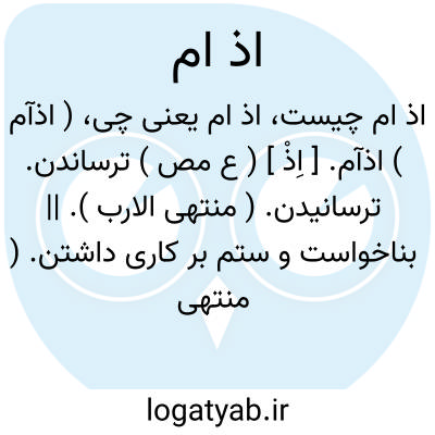 ( اذآم ) اذآم. [ اِذْ ] ( ع مص ) ترساندن. ترسانیدن. ( منتهی الارب ). || بناخواست و ستم بر کاری داشتن. ( منتهی الارب ). اکراه.