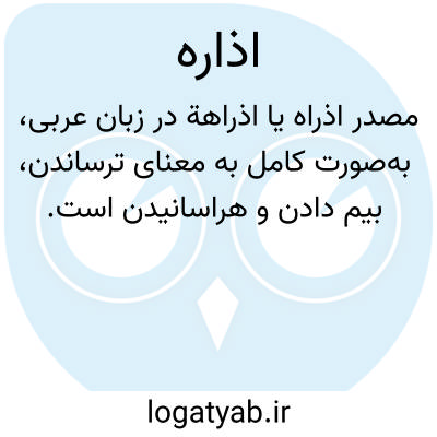 مصدر اِذراه یا اِذراهَة در زبان عربی، به‌صورت کامل به معنای ترساندن، بیم دادن و هراسانیدن است. این واژه بیانگر عمل القای حس ترس یا ایجاد حالت دلهره در فرد یا گروهی دیگر می‌باشد. در متون کهن لغوی، این مصدر برای توصیف عملی به‌کار می‌رود که طی آن، فردی باعث می‌شود دیگری احساس امنیت خود را از دست داده و دچار اضطراب گردد. ریشه این کلمه به حروف اَذْرَ بازمی‌گردد که دلالت بر پراکندن و منتشر کردن چیزی دارد و در اینجا، منتشر کردن حس ترس است.
