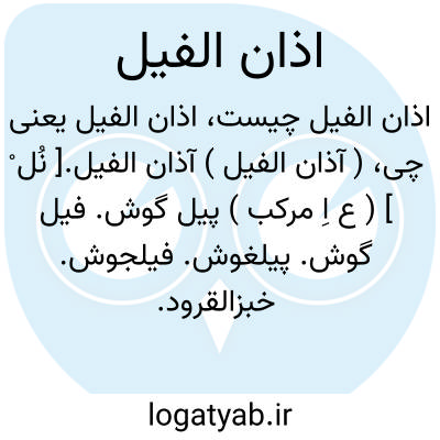 ( آذان الفیل ) آذان الفیل.[ نُل ْ ] ( ع اِ مرکب ) پیل گوش. فیل گوش. پیلغوش. فیلجوش. خبزالقرود. رجل العجل. آرن. ( تحفه ). || آرن بزرگ. لوف الکبیر. شجرةالتّنین. دراقینون. || آرن جعده. لوف الجعده. || آرن قلقاس. قلقاس. ( قاموس ). || آرن حیه. لوف الحیة. لوف مستطیل. لوف الارقط.