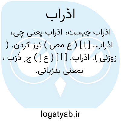 لغت نامه دهخدا اذراب. [ اِ ] ( ع مص ) تیز کردن. ( زوزنی ).اذراب. [ اَ ] ( ع اِ ) ج ِ ذَرَب، بمعنی بدزبانی.