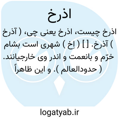 ( آذرخ ) آذرخ. [ ] ( اِخ ) شهری است بشام خرّم و بانعمت و اندر وی خارجیانند. ( حدودالعالم ). و این ظاهراً مصحف اَذْرُخ است که بنا بضبط یاقوت شهری است در اطراف شام.