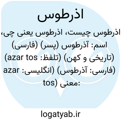 اسم: آذرطوس (پسر) (فارسی) (تاریخی و کهن) (تلفظ: azar tos) (فارسی: آذرطوس) (انگلیسی: azar tos)