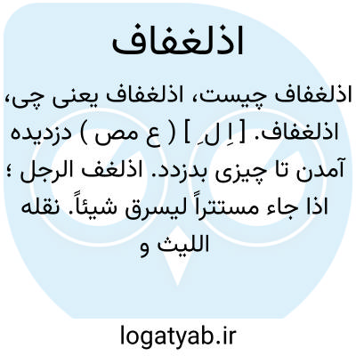 اذلغفاف. [ اِ ل ِ ] ( ع مص ) دزدیده آمدن تا چیزی بدزدد. اذلغف الرجل؛ اذا جاء مستتراً لیسرق شیئاً. نقله اللیث و رواه ُ غیره بالدال المهملة و بالذال المعجمة اصح، هکذا اورده صاحب اللسان واهمله الصاغانی والجوهری و غیرهما. ( تاج العروس ).