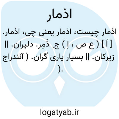 لغت نامه دهخدا اذمار. [ اَ ] ( ع ص، اِ ) ج ِ ذَمِر. دلیران. || زیرکان. || بسیار یاری گران. ( آنندراج ).