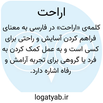 کلمهی «اراحت» در فارسی به معنای فراهم کردن آسایش و راحتی برای کسی است و به عمل کمک کردن به فرد یا گروهی برای تجربه آرامش و رفاه اشاره دارد. این واژه معمولاً در متون قدیمیتر و ادبی به کار میرود و نشاندهنده توجه و مراقبت از دیگران برای کاهش رنج، درد یا زحمت آنهاست. این مفهوم میتواند در زمینههای جسمی، مانند فراهم کردن امکانات راحتی و آسایش، یا در زمینههای روحی و روانی، مانند حمایت عاطفی و دلگرمی، کاربرد داشته باشد. همچنین این واژه با مفاهیمی مانند آسایش دادن، آرامش بخشیدن، راحت کردن و دلگرم کردن هممعنی است و در ادبیات فارسی برای توصیف رفتارهای انسانی مثبت و دلسوزانه به کار میرود.