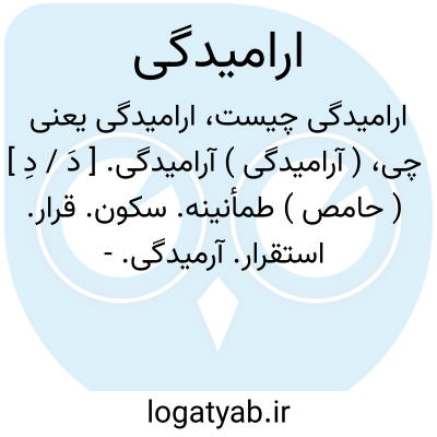 ( آرامیدگی ) آرامیدگی. [ دَ / دِ ] ( حامص ) طمأنینه. سکون. قرار. استقرار. آرمیدگی.